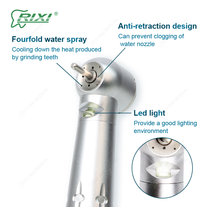 Key Advantages: German ceramic bearings ensure longevity and stability; LED fiber optics provide excellent visibility of the surgical area; triple water spray effectively cools the tooth to prevent pulp damage.